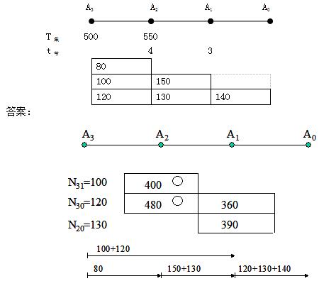 根据下面的资料,用表格计算法确定A3—A0方向单组列车最优编组方案(不考虑改编能力),并画出其列车到达站图。